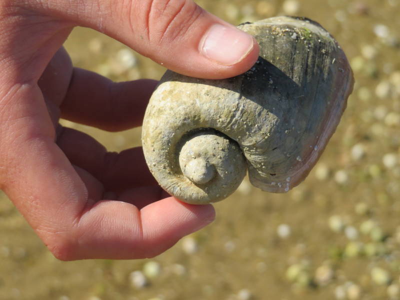 Foto: schelp gevonden op een zandbank bij Culatra