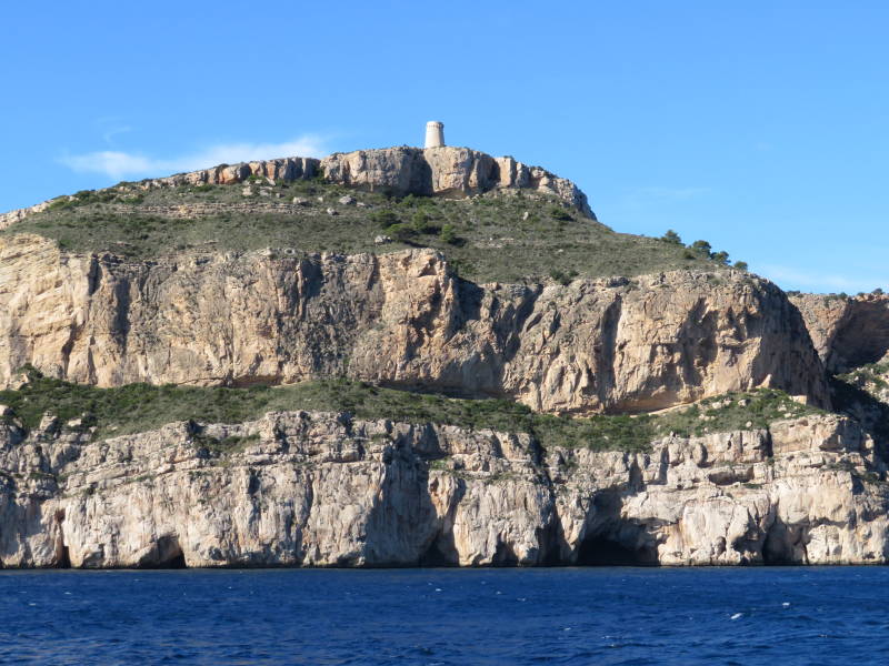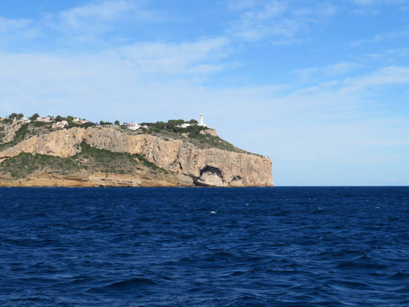 We varen weer, de hemel is strak blauw, en de wind is fris. Prim zeilweer, halve wind, kracht 5, maar we besluiten het op de motor te doen omdat door de vele bergen, dalen en kapen de wind zeer onregelmatig en vlagerig is. Maandag willen we in Valencia zijn, morgen is het weer onstuimig is de verwachting, dus vandaag met de motor zover we kunnen komen, waarschijnlijk Gandia.