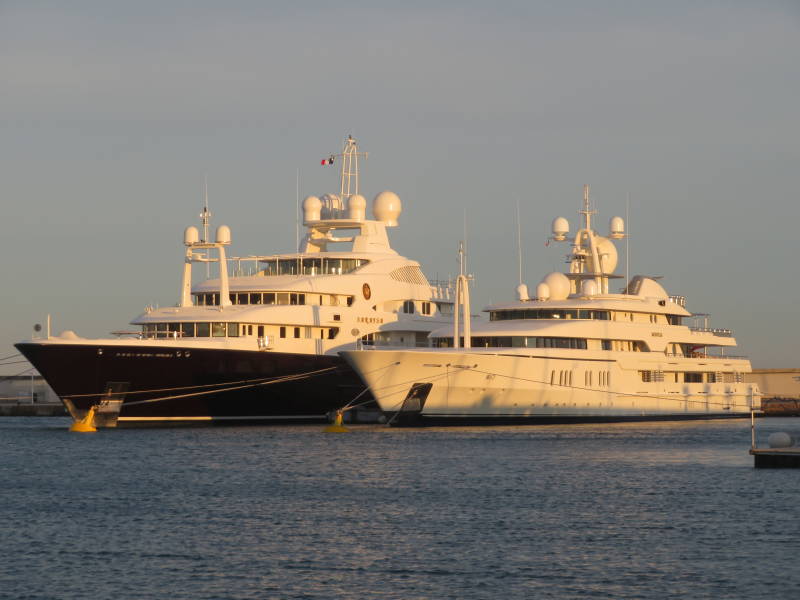 Of de happy few wel zo happy is weet ik niet - aan boord van deze schepen zie ik niemand lachen. Later begrijp is dat de mensen aan boord waarschijnlijk de ingehuurde bemanning van deze schepen is - veel boten overwinteren in Antibes en gaan in de warmere maanden cruisen in de Middellandse zee.