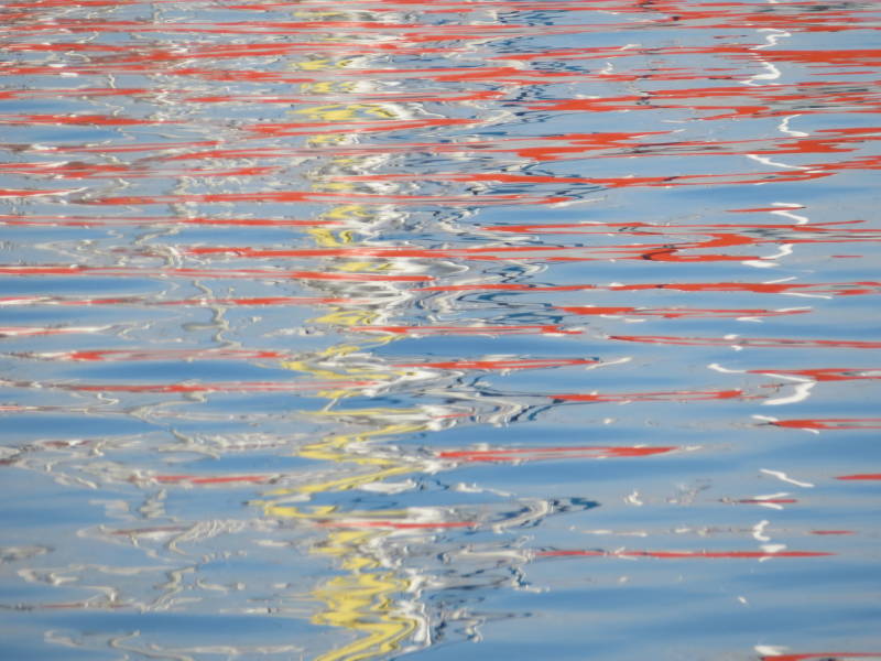 Verderop zijn 420-ers aan het zeilen. We zien ook skiffs met een indrukwekkende genaker. Een groepje van 4 lasers met begeleiding van een snelle rubberboot kruist onze koers. Op volle snelheid planeren ze met halve wind. De boten hebben een frans zeilnummer - kennelijk wedstrijdboten. Misschien zijn dit wel aanstormende Franse talenten waar we op de volgende olympische spelen van zullen horen.