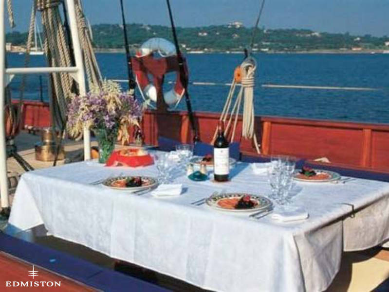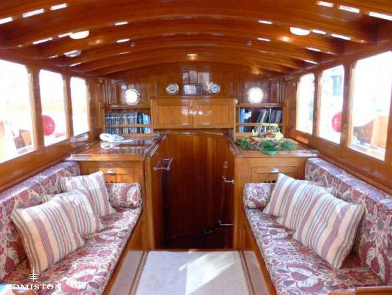 En terecht, het is een schoonheid. Bovendien te koop, nog geen 3 miljoen euro (dat is inclusief het getoonde bloemstuk, maar exclusief bemanning en ligplaats).