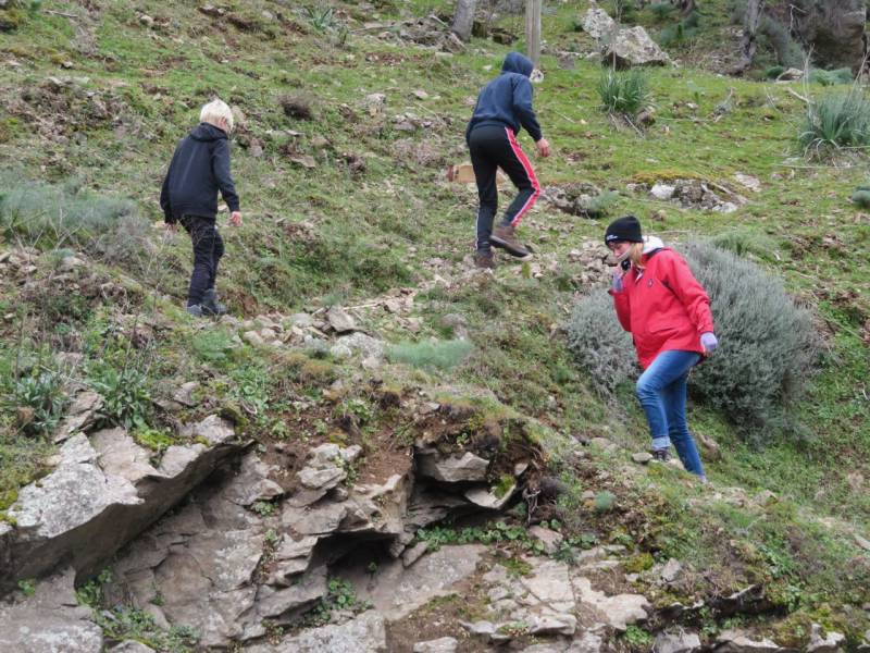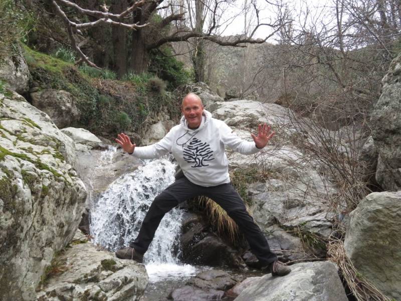 We zijn net een kleine beek gepasseerd die uitkomt op de woeste stroom verder in het dal en dat vraagt om verdere inspectie. Sjouke Lute en Laurens Hendrik gaan op onderzoek en komen na 3 minuten met een grote glimlach terug, met de mededeling: prachtig, kom maar mee.