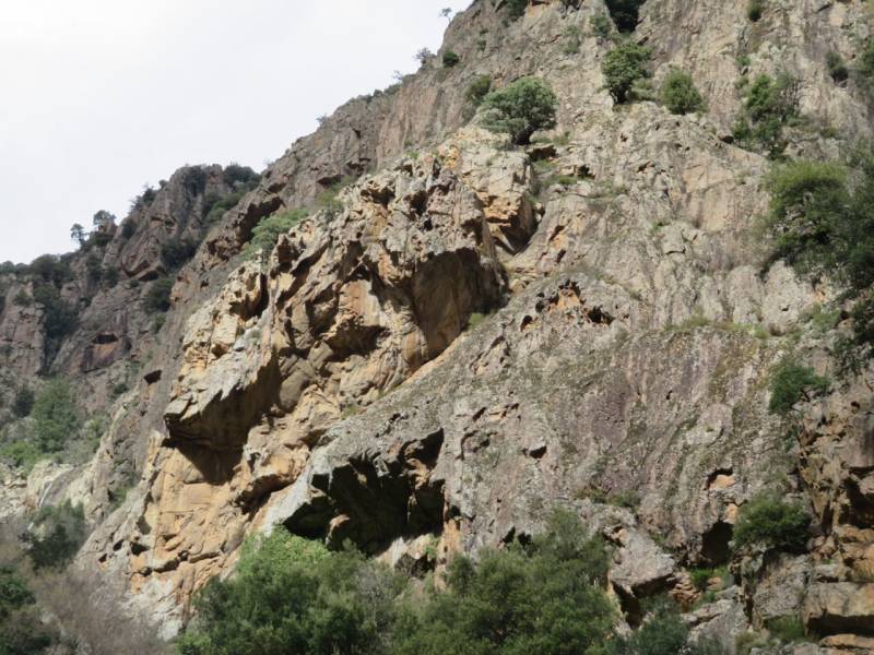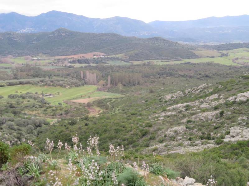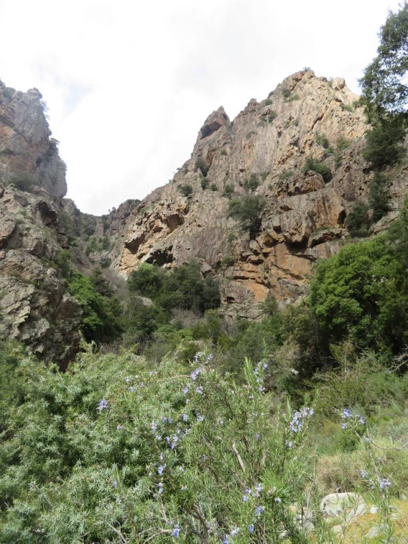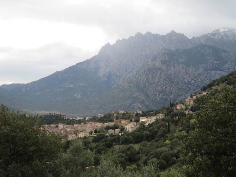 Dan gaan we verder naar het westen, een nieuwe kloof in in de richting van het dorpje Asko. Na een paar bochten zien we de hoogste berg van Corisca liggen, Monte Sinto, dik 2700 meter hoog. Een imposant gezicht met bovenop sneeuw.
