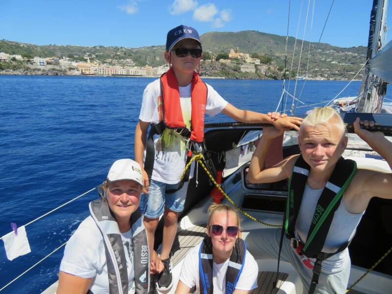 De weg terug van de dieselpomp in Lipari naar Vulcano zeilen we bij zwakke wind. Lekker rustig tochtje.