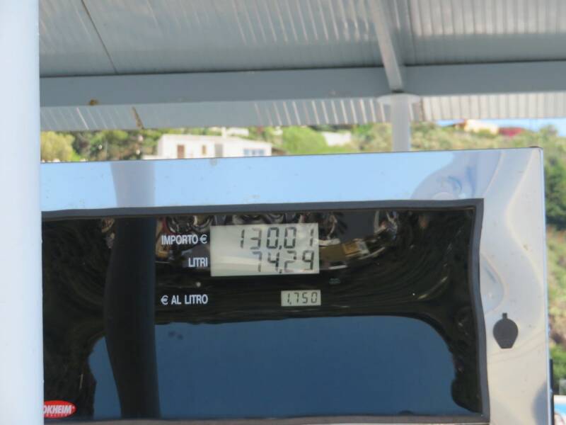 Het is druk bij de Aeolian Bunker - er liggen 4 schepen te tanken. We wachten tot er een jacht weggaat en leggen daar dan aan. Ook hier gaat het heel gemakkelijk. De crew is stil. Kapitein gebruikt een paar Italiaanse woorde. Tanken. Contant betalen. Geen bon. Wegwezen.