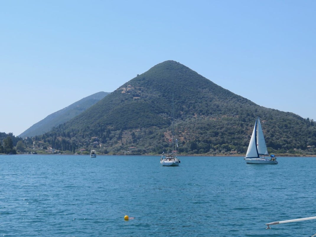Ben je weer uit de baai op zee - dan merk je hoe luw het hier ligt, aan de oost kant van Levkas.