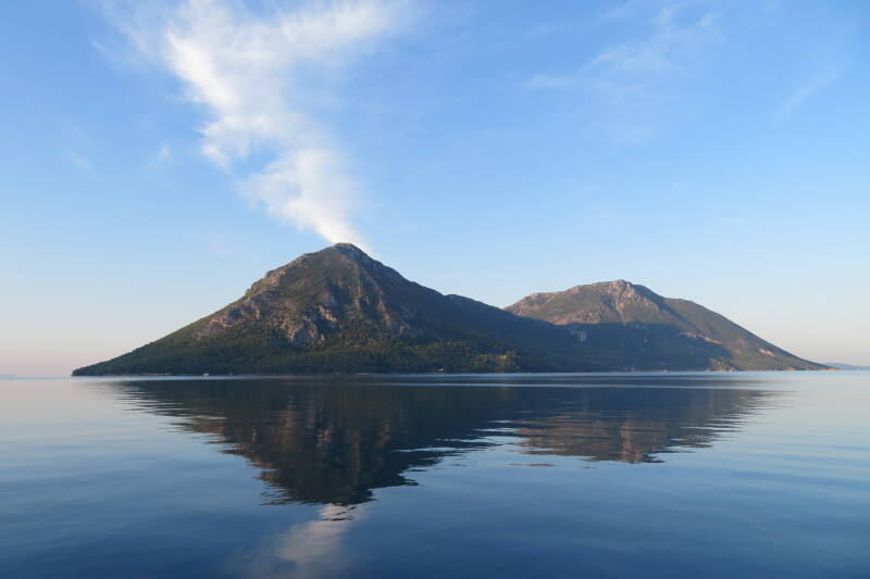 Kalamos in de vroege ochtend, gezien vanuit het noorden.