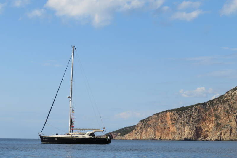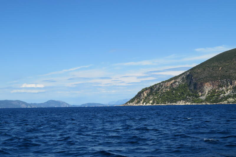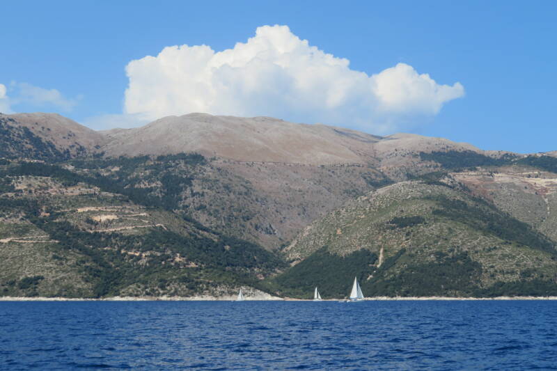 Tussen Ithaca en Kefalinia, soms 1.8 knoop, soms 8.1 knoop